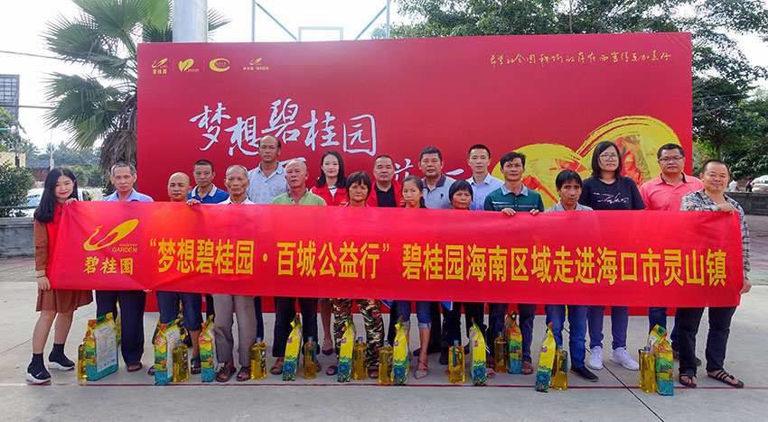 “梦想碧桂园·百城公益行”是2014年由碧桂园集团志愿者协会发起的爱心公益活动,目前已走过了广东、广西、河南、安徽、江苏、福建、浙江等超过20个省份,旨在为有需要的人们提供物质和心理关怀。在海南,截至2019年11月,百城公益行活动已先后走进海口、文昌、澄迈、临高、博鳌、三沙、陵水、三亚、乐东等12个市县,累计开展65场活动,为需要帮助的人们送去温暖。