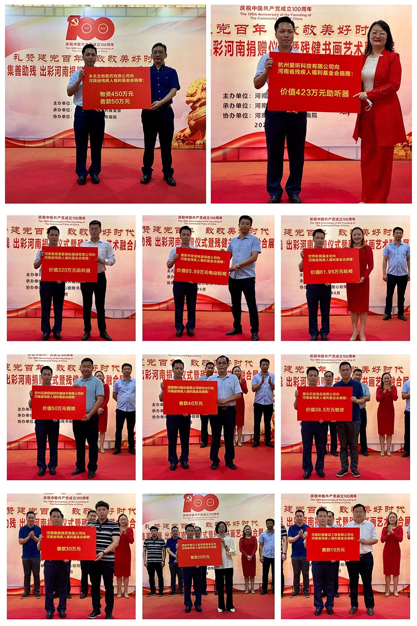 记者从河南省残疾人福利基金会获悉,在河南省残联、省残疾人福利基金会日前共同举办的主题为“礼赞建党百年 集善助残暨残健书画艺术融合展”的暖心助残活动期间,共有30余家爱心单位向河南省残疾人福利基金会捐赠款物5500余万元,用于支持残疾人慈善事业。