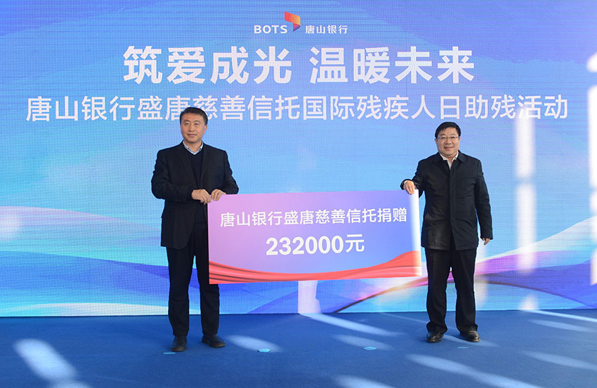多年来,唐山银行在做好自身经营发展的同时,积极投身慈善公益事业,践行地方国有银行的社会责任,通过盛唐慈善信托开展扶残助残活动,弘扬扶残助残的传统美德,对需要帮助的社会弱势群体给予热情帮助,使他们感受到来自社会的关怀。去年,唐山银行把盛唐慈善信托成立后的首笔善款 23 万元捐赠给唐山市 460 户困难残疾家庭,助力残疾朋友顺利脱困,共奔小康。