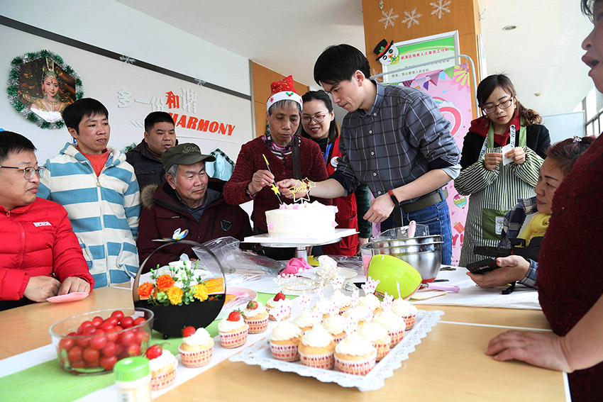 3月15日,江苏省无锡广益街道广丰社区党支部给“残疾人之家”的残疾人员举行了集体生日会。活动中,残疾人员还现场展示技能,制作蛋糕庆祝生日。图为&l