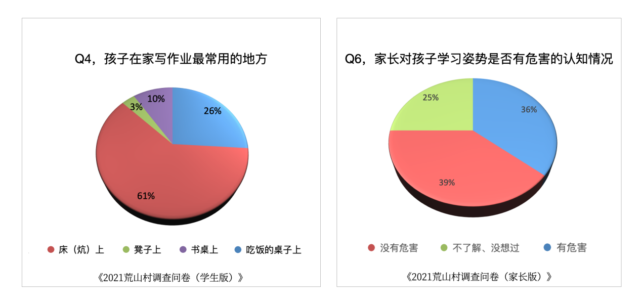 事实上,问卷调查中“你觉得孩子现在的学习姿势对视力和发育有危害吗?”这个问题的答案显示,有39%的家长认为没有危害,25%的家长表示不了解、没想过。