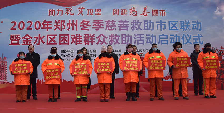 慈善公益报(本报记者 王杰)12月18日,河南省郑州市金水区文博广场爱心涌动。郑州慈善总会联合中共金水区委、金水区人民政府、金水区民政局及金水区慈善总会集中开展了“助力脱贫攻坚 创建慈善城市”2020年郑州冬季慈善救助市区联动暨金水区困难群众救助活动启动仪式。《慈善公益报》记者了解到,此次活动为828名重度残疾人和100名环卫工发放救助金共计82.8万元,发放爱心物资价值10万元。