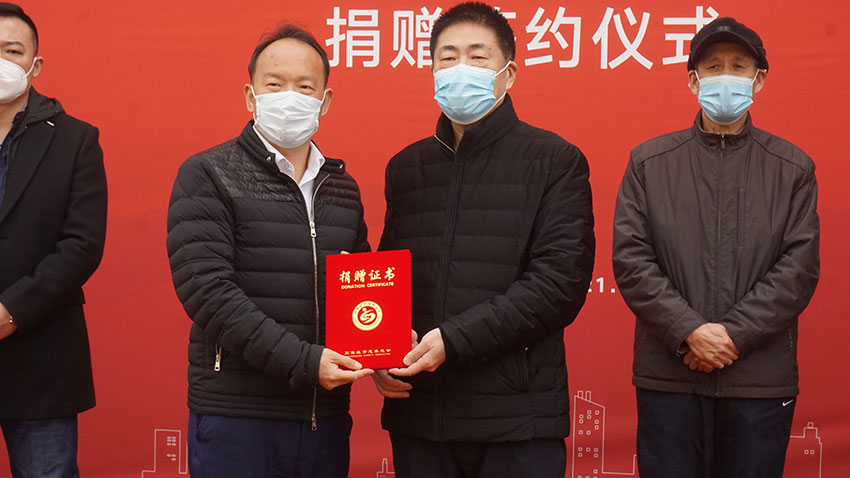 石家庄市慈善总会会长张发旺接收融创中国捐赠的1000万元