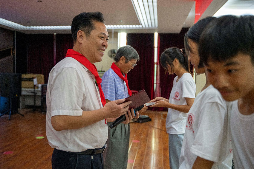 本期研学班班主任由北海民间志愿者协会会长许海欧担任,新华社原副总编徐学江担任名誉班长,北海市慈善总会会长符玉国担任荣誉班长。开班仪式上,学生代表为名誉班长和荣誉班长佩戴红领巾并颁发证书。学生们表示将以名誉班长和荣誉班长为榜样,从小立下鸿鹄之志,培养高尚人格,刻苦学习,努力做一个对社会有用的人。