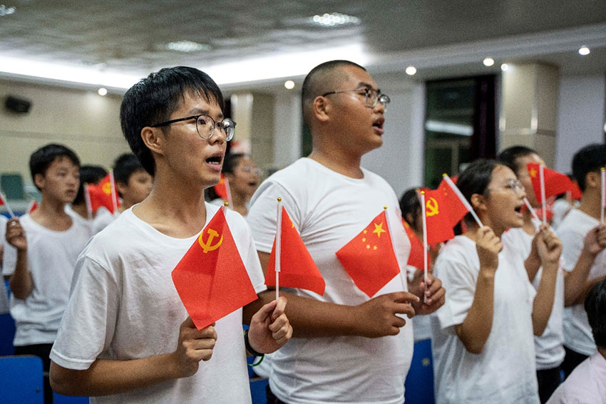 开班仪式上,学生们观看了展现中国共产党百年光辉历史的视频,许多学生感动得流下了热泪。40名学生高唱《我们是共产主义接班人》并庄严宣誓“请党放心,强国有我!”