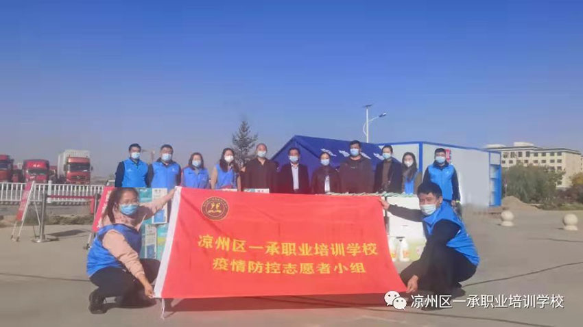 今年10月,甘肃地区新冠肺炎疫情卷土重来,形势严峻。为贯彻落实武威市、凉州区新冠肺炎疫情联防联控领导小组工作部署,一承职业培训学校第一时间组织召开专项会议,成立了以蔡成庆校长为组长的疫情防控志愿者小组,会后即刻奔赴各个疫情防控点,在严格做好自我防护的同时,为凉州区交通局高速北出入口、金沙镇、金羊镇蔡庄村、赵家水坑村等疫情防控点以及凉州区中心敬老院送去了13000只医用口罩、1350斤消毒液、20台电动喷雾器等价值21000多元的防疫物资,使各个疫情防控点都有一承职业培训学校志愿者的身影闪动着、闪光着、闪耀着。