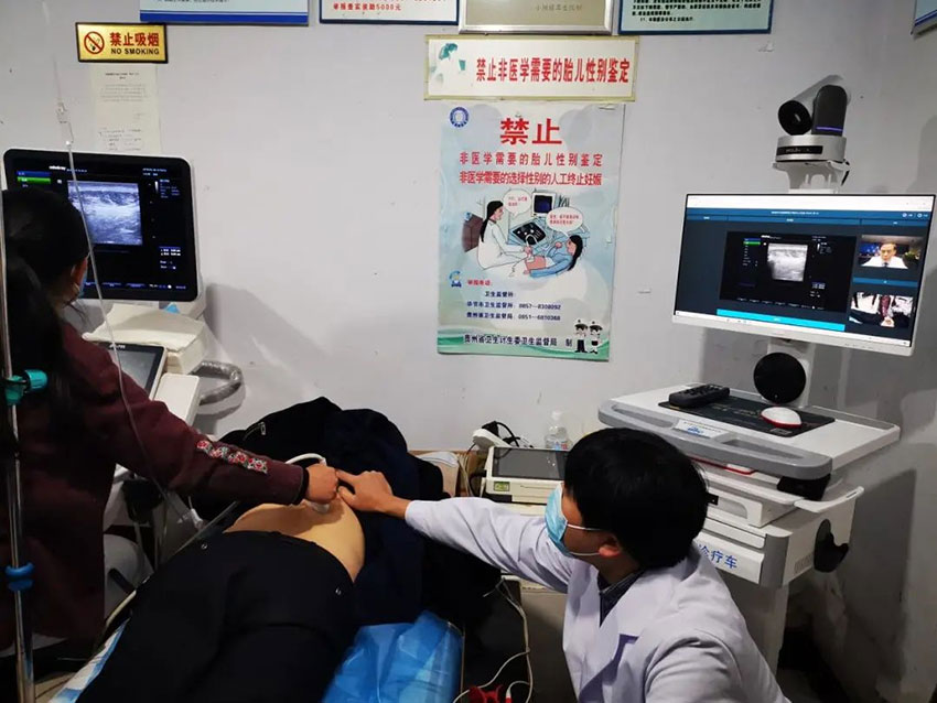 ▲乡卫生院影像科室与长沙湘雅医院的教授进行实时影像检查诊断
