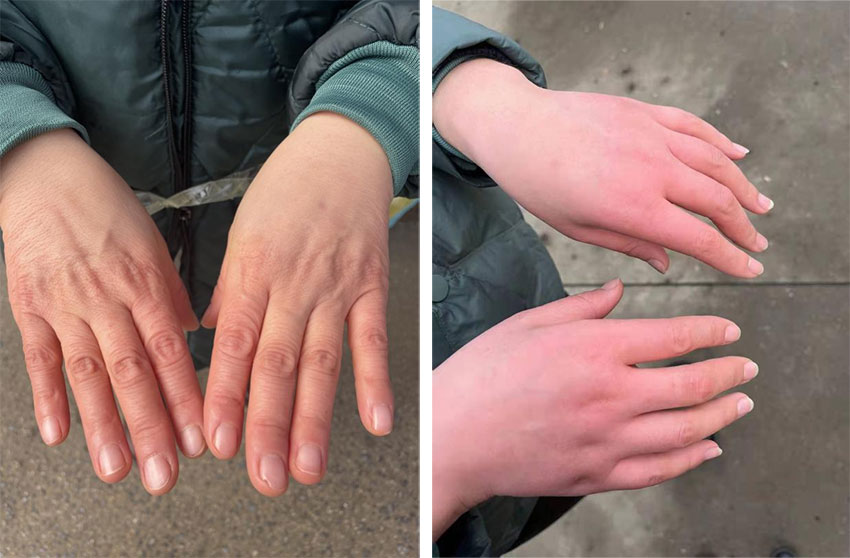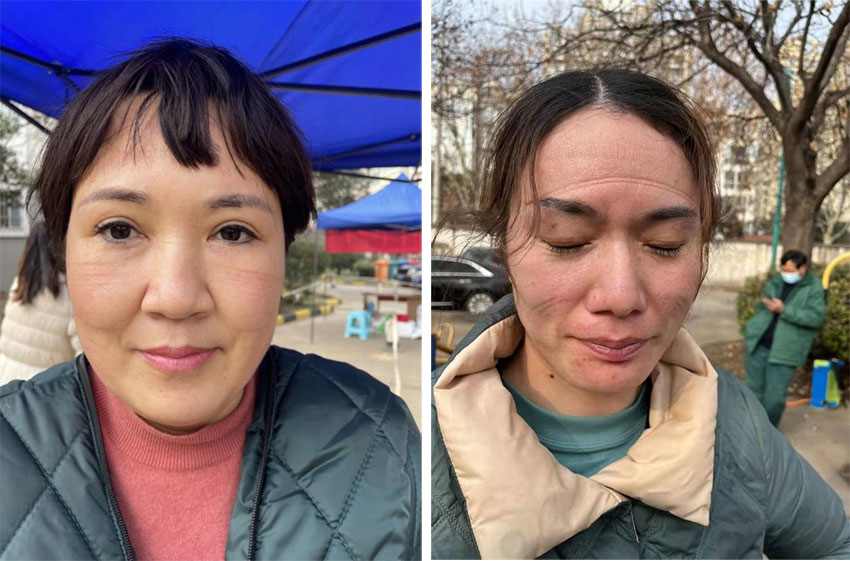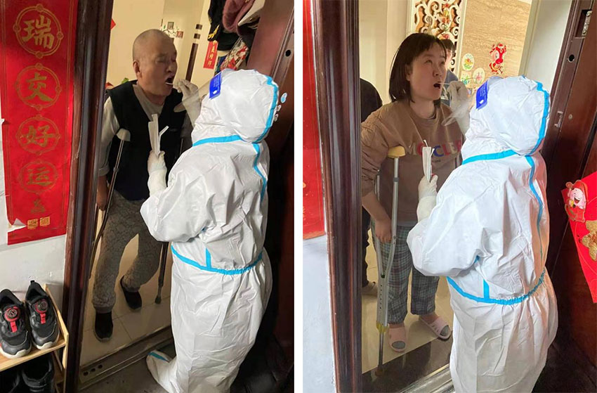 寒风中,“大白”们冻得瑟瑟发抖,原地蹦跳着取暖,也要等到最后一名居民采样完成;因部分小区没有安装电梯,数日来,“大白”们一层一层爬上去,为行动不便的居民上门采样。