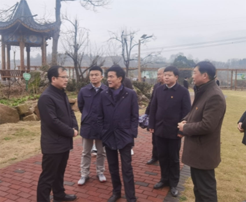 时任省民政厅副厅长孟志强(左二)在黄冈市调研“幸福家园”项目实施情况