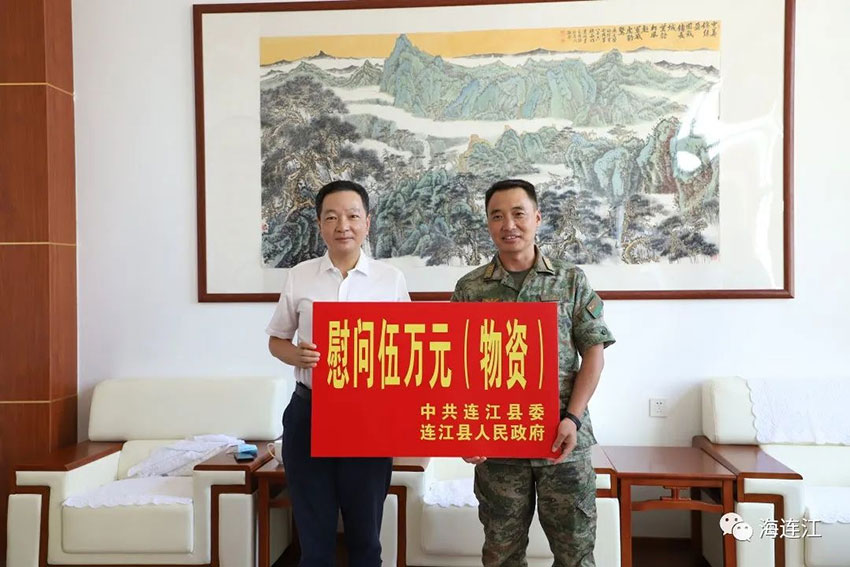 陈劲松说,连江县素有“拥军优属、拥政爱民”的光荣传统,今年“八一”节前夕再次获得“省级双拥模范县”称号,是全县人民的光荣。多年来,广大驻连部队官兵在完成自身战备训练任务的同时,积极保障连江人民生命财产安全、支持连江经济社会发展、参与军民共建和社会公益活动,作出了积极贡献,与连江人民结下了深厚情谊。今后,连江县委、县政府将一如既往地支持驻连部队建设,切实帮助部队办实事、解难事,不断巩固双拥共建成果、深化军政军民团结情谊。