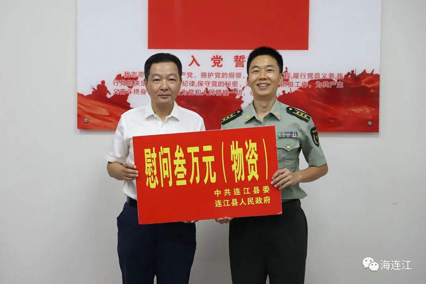 慈善公益报(李剑钰 本报记者 钟伟)7月30日,“八一”建军节即将来临之际,福建省连江县委书记陈劲松率队走访慰问驻连部队、伤残军人,向他们送上节日的关怀和问候。副县长雷发勇、县人武部政委阙扬州参加慰问。