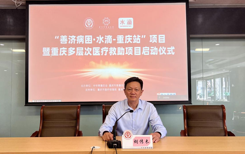 慈善公益报(谢昱航)9月23日,“善济病困·水滴”项目-重庆站项目暨重庆多层次医疗救助项目启动仪式在重庆举行。中华慈善总会纪委书记、会长助理胡传木,重庆市民政局慈善社工处四级调研员黄今欣、医疗保障局待遇保障处一级调研员陆海华,水滴公司合伙人、高级副总裁郭南洋,重庆市慈善总会常务副会长陈焕奎出席活动并讲话。重庆市慈善总会副会长况由志主持活动。