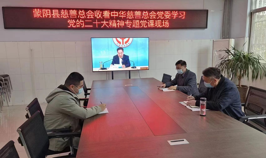 临沂市慈善总会领导班子及工作人员集体线上参加专题党课。大家一致感到深受启发,市慈善总会会长徐福田在总结讲话时强调,总会全体人员要把学习贯彻二十大精神作为当前和今后一个时期的重要政治任务来抓,制定详实的工作方案,学深悟透、融会贯通,内化于心、外化于行,使二十大精神成为指导总会各项工作,指导临沂慈善事业高质量发展的行动指南。
