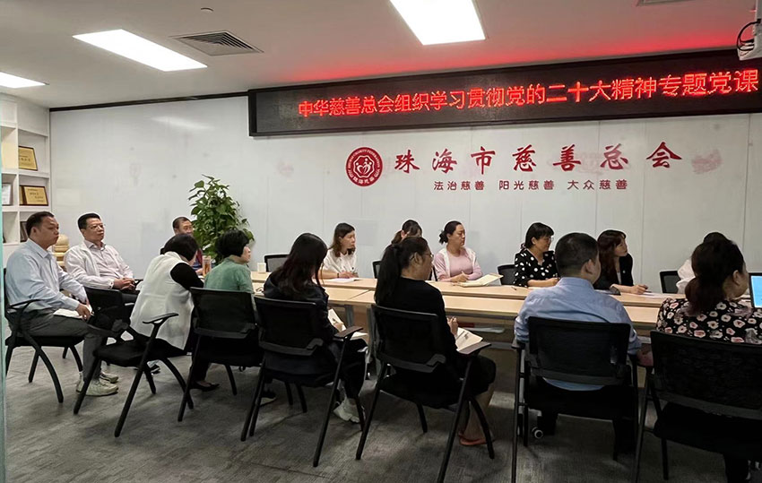 海口市慈善总会工作人员集体于线上参加专题党课。大家一致认为,宫蒲光会长的授课及时、全面,使大家进一步加深了对二十大精神的认识和理解,明确了下一步慈善工作的重点与方向,更加牢固了作为慈善工作者的使命感与责任感,增强了走中国特色慈善之路、实现高质量发展的信心和决心。