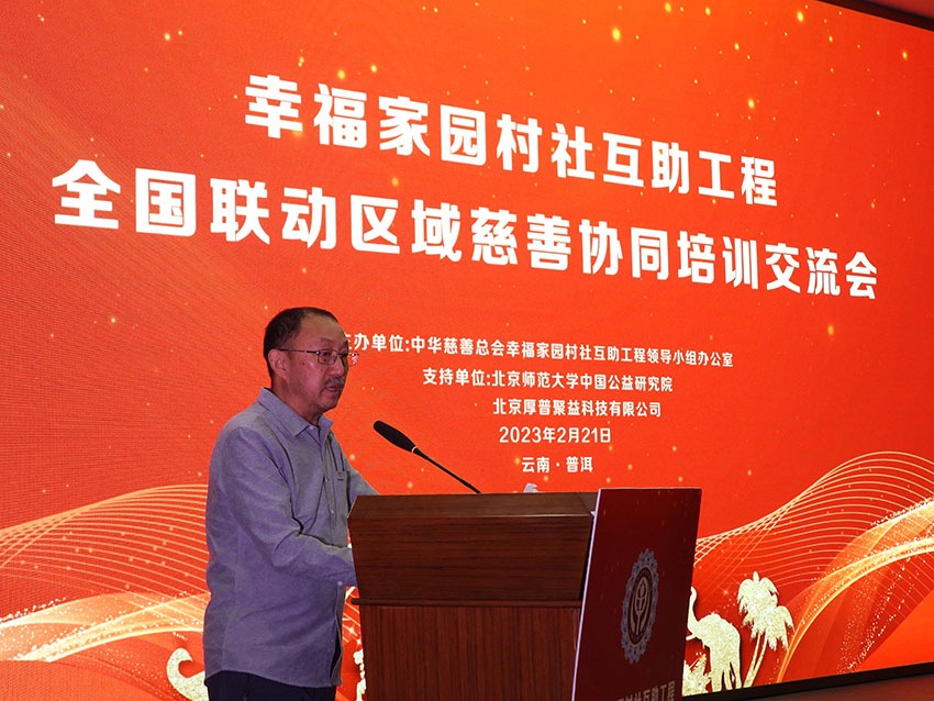 慈善公益报(陈 峰)2月21日,中华慈善总会“幸福家园”村社互助工程全国联动区域慈善协同启动大会在云南省普洱市召开。中华慈善总会副会长孙少华出席会议并讲话,普洱市人民政府副市长徐红斌到会并致辞。会议由中华慈善总会副会长刘伟主持。