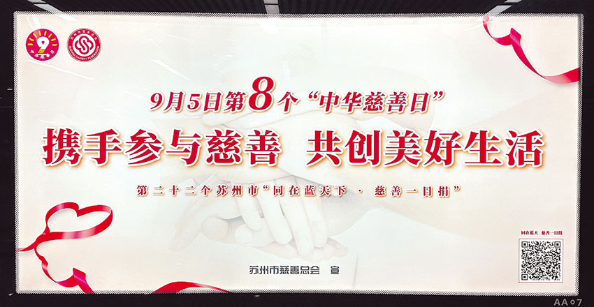 慈善公益报(苏 慈)今年9月5日是我国第八个“中华慈善日”,9月也是“苏州慈善月”。其间,苏州市各地以“携手参与慈善,共创美好生活”为主题,广泛开展了形式多样、内容丰富的慈善主题宣传、慈善筹募、慈善文化活动,普及慈善意识,传播慈善文化,营造人人心怀慈善、人人参与慈善的良好社会氛围,让爱心善举在苏城大地涌动不息、蔚然成风。