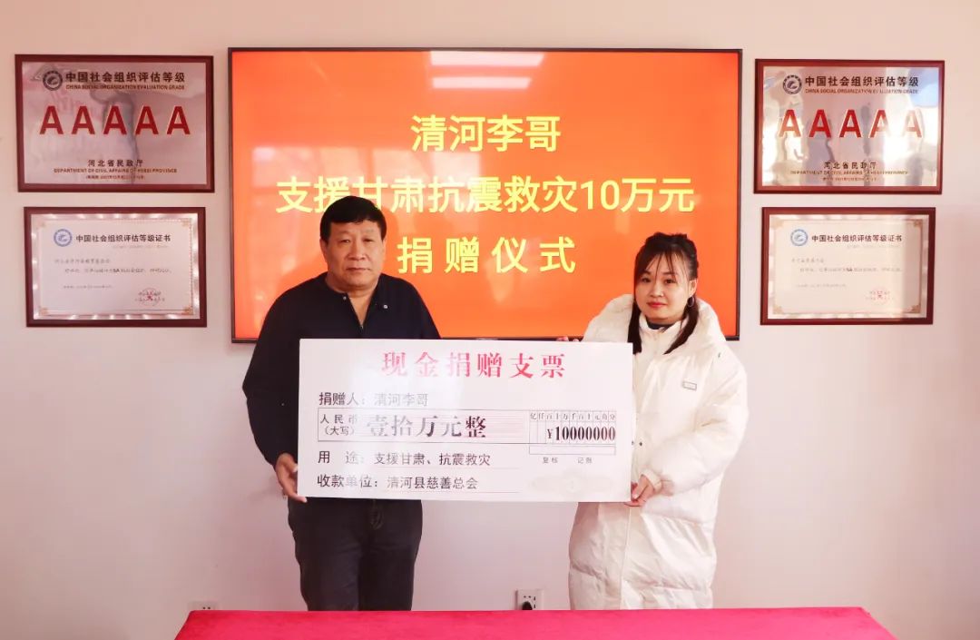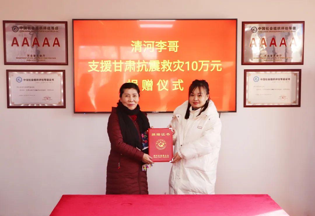 “清河李哥”捐款10万元支援甘肃灾区