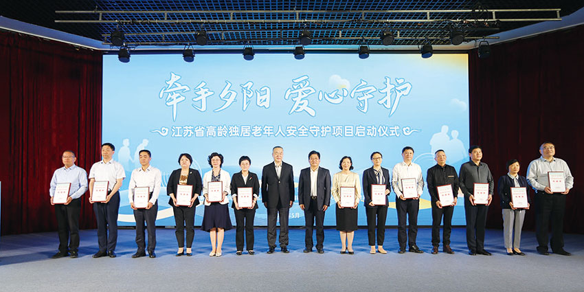 江苏是全国老龄化程度较高的地区之一。截至2022年底,全省户籍人口中60周岁以上老年人口1943万人,占总人口比24.73%。经初步调查摸排,不与子女生活在同一主城区或同一县(市)的高龄、经济困难、失能等重点空巢独居老年人共约2.6万人。他们的日常生活居家安全,始终牵动着全社会每一个为人儿女的心。为有效防范、及时发现、稳妥化解全省空巢独居老年人居家安全风险,回应社会关切,增进老年人福祉,江苏省民政厅、省慈善总会于5月23日在南京举行“牵手夕阳——高龄独居老年人安全守护”项目启动仪式。省民政厅党组书记、厅长