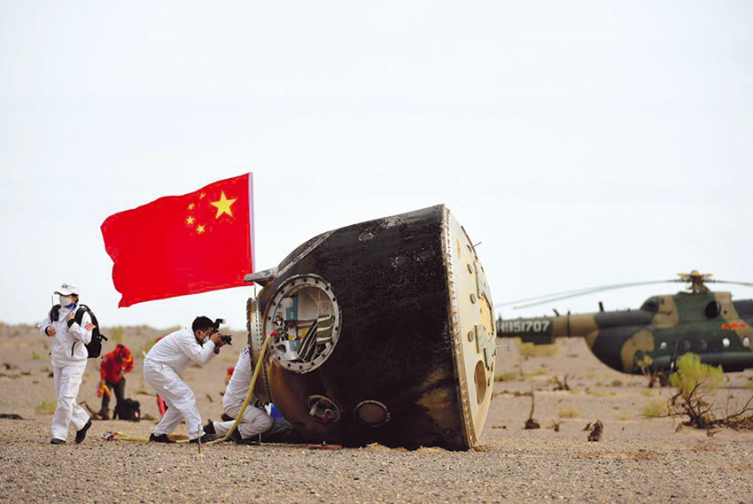 6月4日,神舟十五号载人飞船返回舱在东风着陆场成功着陆。新华社记者 任军川 摄