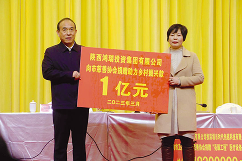 慈善公益报(钟 伟 郭万宝)在日前召开的陕西省商洛市慈善协会第四届四次理事会上,爱心企业——陕西鸿瑞集团向商洛市慈善协会捐赠助力乡村振兴资金1亿元,携