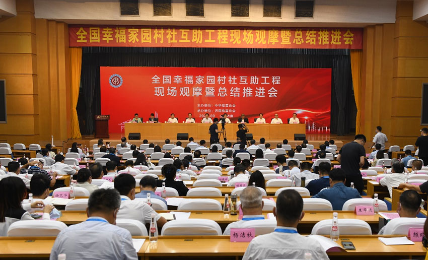 9月15日,由中华慈善总会主办、济南慈善总会承办的全国“幸福家园”村社互助工程现场观摩暨总结推进会在济南舜耕山庄召开。全国人大社会建设委员会副主任委员、中华慈善总会会长宫蒲光,山东省副省长孙继业,济南市人大常委会主任、山东省慈善总会会长韩金峰,福建省人大常委会原党组书记、副主任、省慈善总会会长雷春美,河南省政协原党组副书记、副主席、省慈善联合总会会长邓永俭,中华慈善总会秘书长边志伟,中华慈善总会荣誉副会长徐镱轩,山东省政府副秘书长张连三,济南市副市长王桂英,济南市政协原副主席、济南慈善总会会长徐明梅,山东