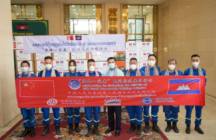 当地时间5月4日,由柬埔寨民间社会组织联盟论坛主办的中华慈善总会蓝天救援捐赠抗疫物资交接仪式在位于柬埔寨首都金边的首相府友谊大厦举行。柬埔寨首相府办公厅副主任、柬民间社会组织联盟论坛主席盖里维希,副主席董维洛,秘书长PAY SAMBO及柬卫生部、柬应急救援人民协会中心代表,中国和平发展基金会驻柬办事处代表,中华慈善总会蓝天救援赴柬抗疫援助队全体队员出席仪式。10余家柬埔寨及金边市媒体,新华社、经济日报、中国青年报等驻柬记者参加仪式。