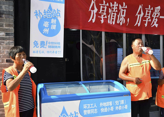 近日,针对高温天气,一些城市街头设立了“爱心冰柜”,为环卫工人、交警、快递员等户外工作者提供冷饮。“爱心冰柜”设立以来,许多爱心市民