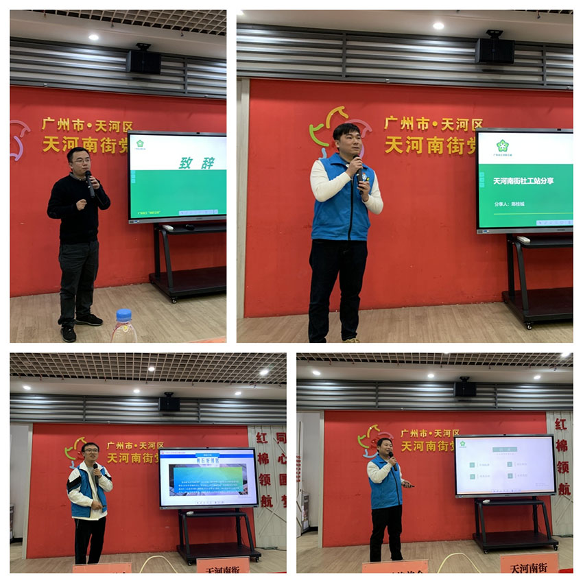 白云区党委政府重视支持,社工积极主动作为,有效推动“社工+慈善”联动融合。天河南街社工站副站长陈桂城带领各社工站代表参观社工站阵地建设,向大家介绍社工站如何一步步形成“商圈五社联动”格局:重点分享了政社互动策略,包括定期主题联系、联合处理事件、合理分配资源、对外工作规范呈现、注重团队培育等。他表示,保持良好的政社关系,方能更好地促进多方参与,形成长效合作机制,助力兜底民生服务和社区治理。此外,陈桂城还介绍了社工站特色慈善项目“公益仓”的介入策略,强调要完善社区资源能力清单、推动各方参与平台搭建与管理、建立资源分级分类输送机制、在党群和各组织之间建立联系。