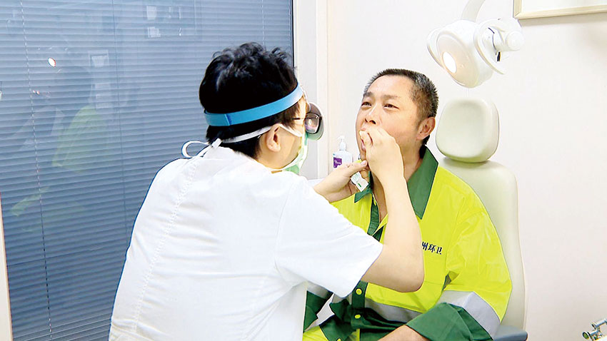 环卫工人在进行口腔项目检查