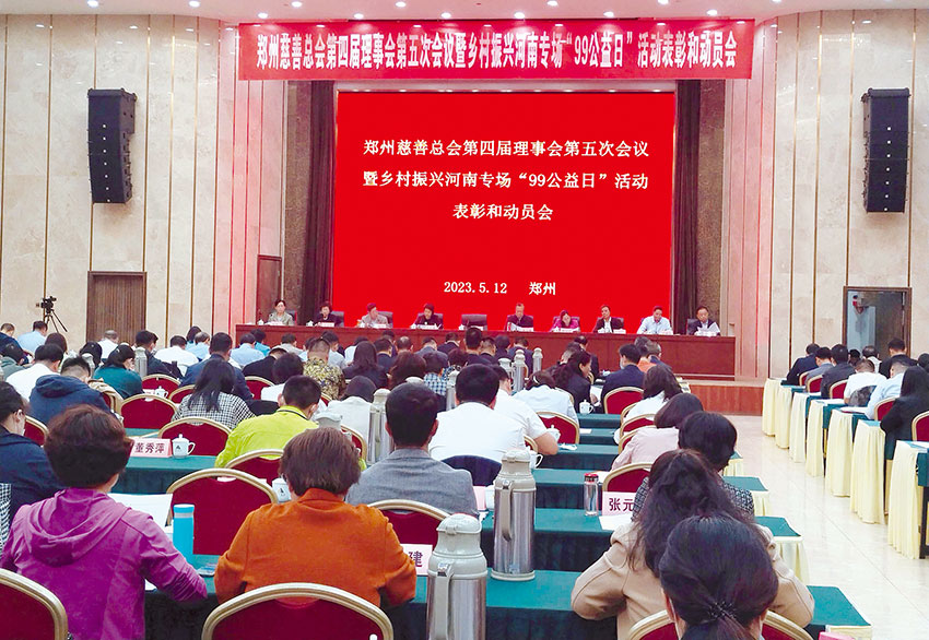 慈善公益报 5月12日,河南省郑州慈善总会第四届理事会第五次会议暨乡村振兴河南专场“99公益日”活动表彰和动员会在郑州市嵩山饭店召开。 郑州市人民政