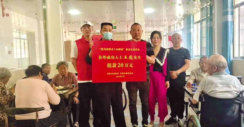 慈善公益报 近日,安徽省阜阳市的王彪先生向阜阳市慈善总会捐赠20万元,用于资助老年人尤其是农村困难老年人用餐。