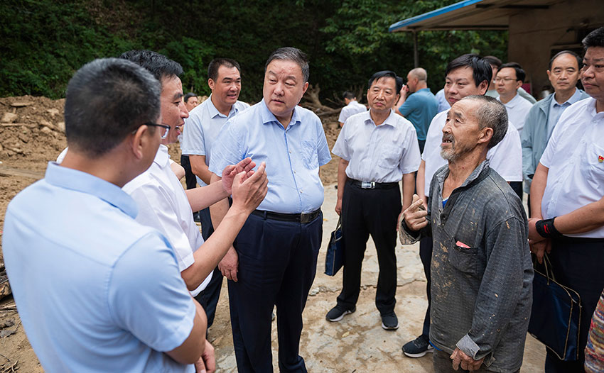 8月25日,陕西省人大常委会原副主任、省慈善协会会长吴前进走进镇安县灾区救灾、看望慰问重灾户,送去帮扶救助金。勉励他们坚定信心,在党和政府的帮助下重建美好家园。