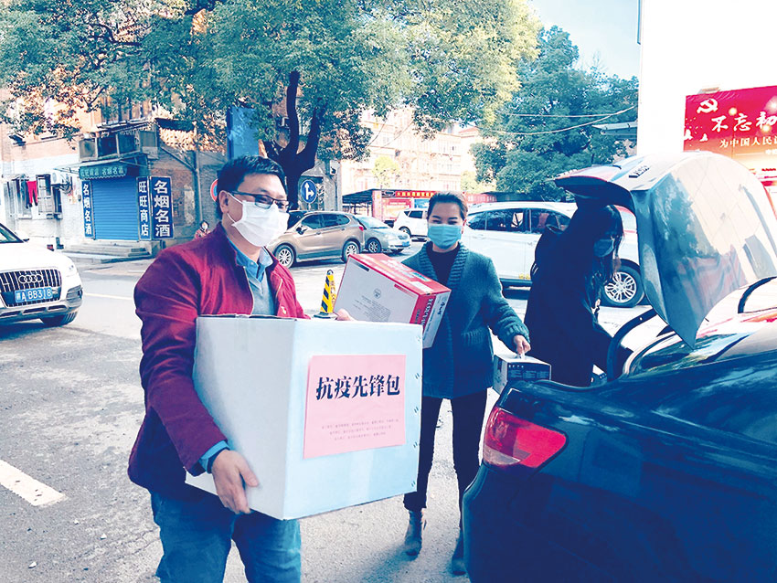 万志强为大院二社区一线防控卡点工作人员志愿者送去防护物资